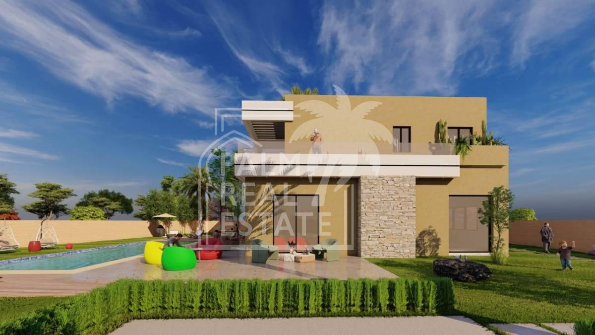 Superbe villa contemporaine à vendre à proximité d’Amelkis, construite avec des matériaux haut de gamme sur un terrain de 1260 m² et offrant 371 m² de surface bâtie.